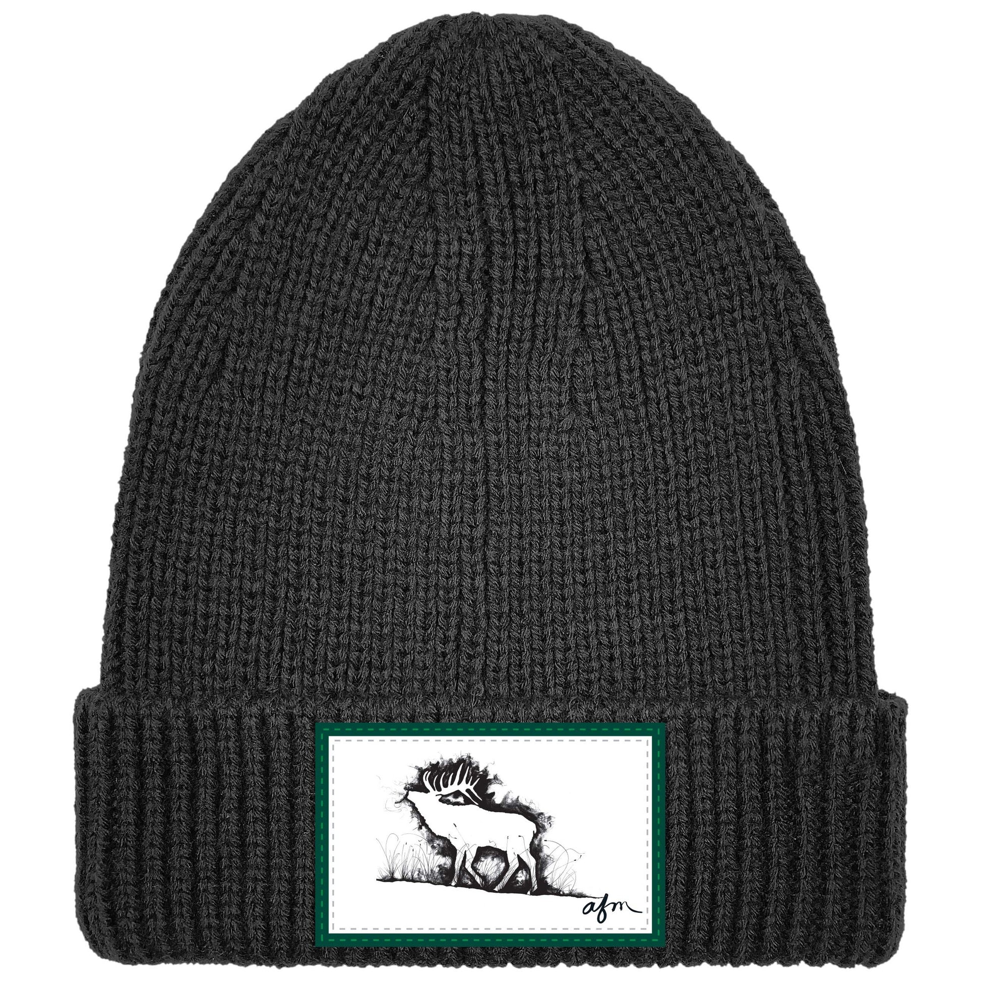 Bull Elk Silhouette Ribbed Cuffed Beanie in Black
